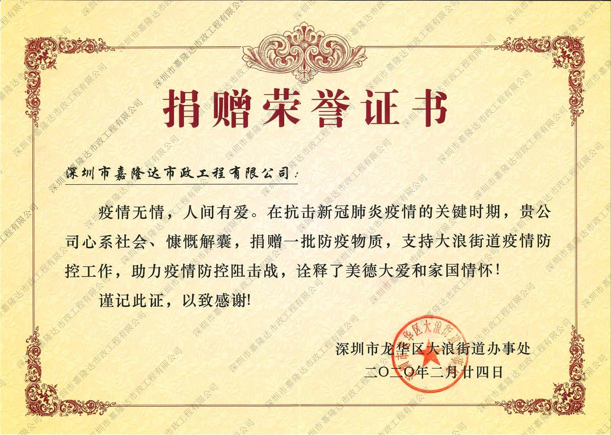 疫情捐贈榮譽(yù)證書